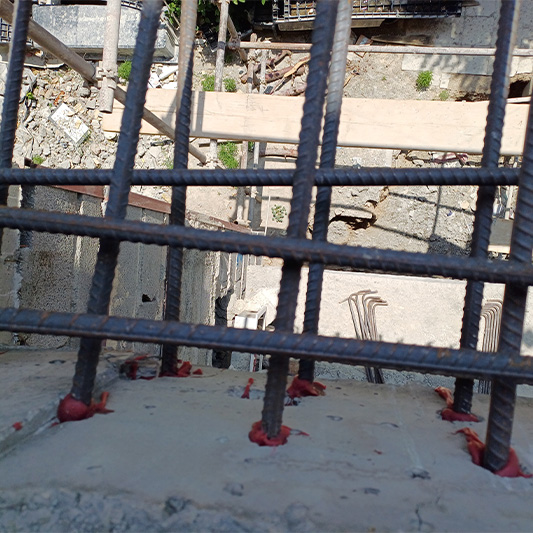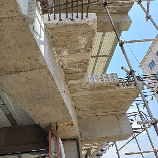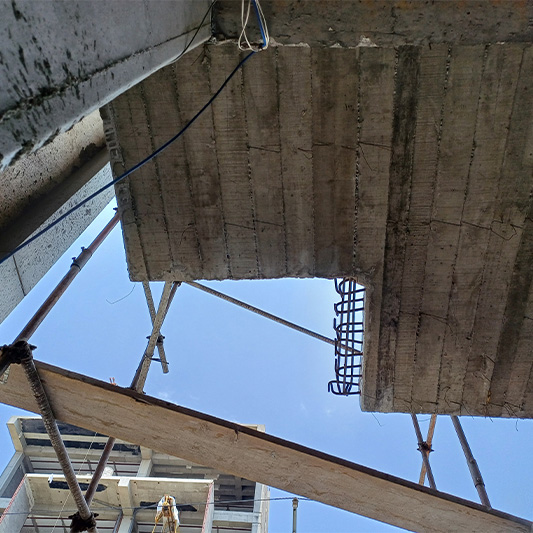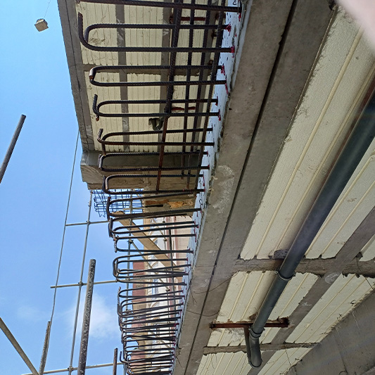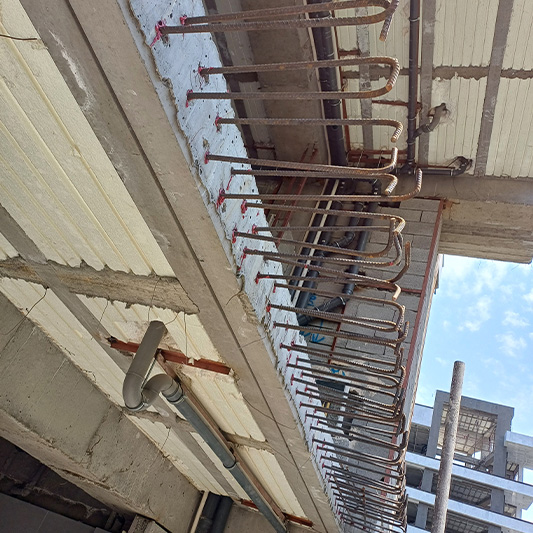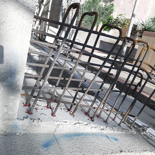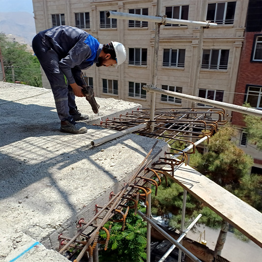 برای این منظور بخش هایی از دال بتنی که بصورت کنسول اجرا گردیده بود به روش وایرکات برش داده شد و برای اجرای طرح جدید کاشت آرماتور در سایزهای مختلف انجام شد.