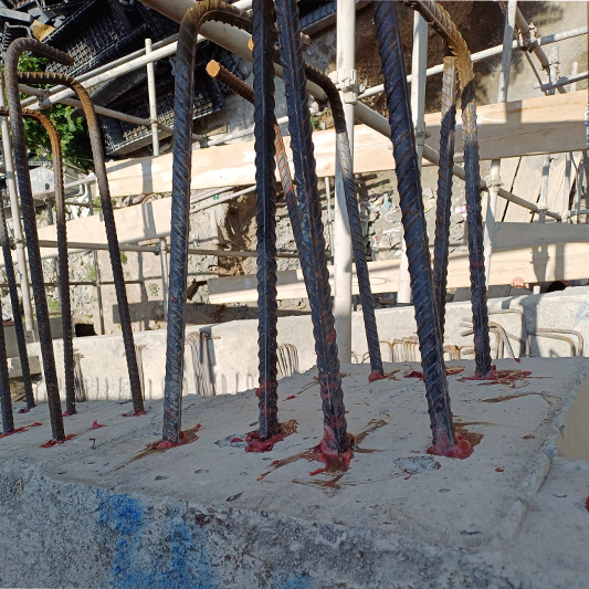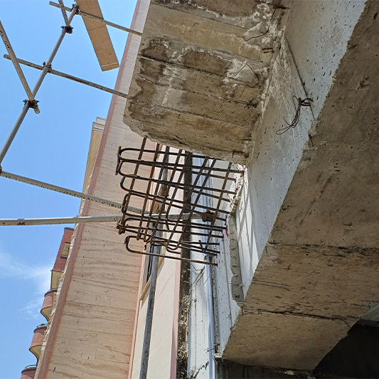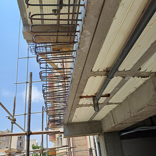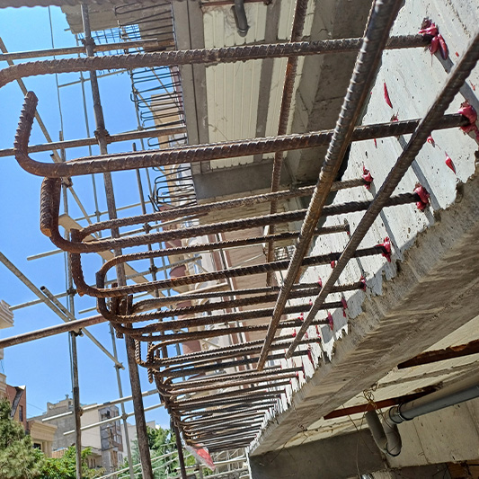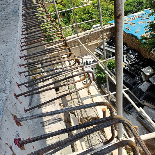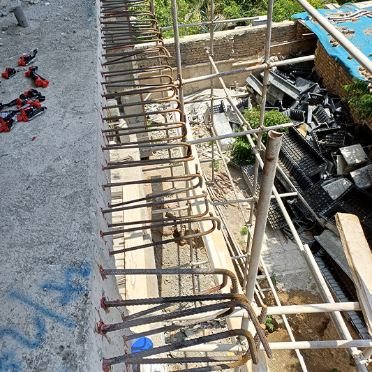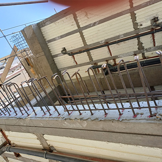 نکته اصلی در اضافه نمودن ابعاد بالکن در جاهایی که بالکن قبلی دال بتنی می باشد این است که تراکم بالای آرماتورهای دال قبلی و همچنین عصایی سر میلگردها، مشکلات زیادی را در اجرای عملیات کاشت ایجاد می کند.