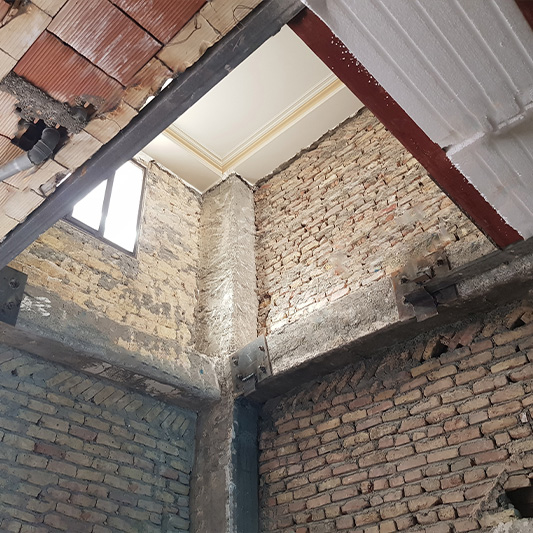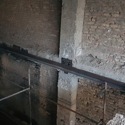 در طبقه همکف ساختمان با کابری تجاری، بنا بر درخواست مالک، نیم طبقه با استراکچر فلزی به سازه بتنی موجود الحاق گردید. برای این منظور از روش کاشت بولت و نصب صفحه فلزی برای ایجاد سقف استفاده شد.