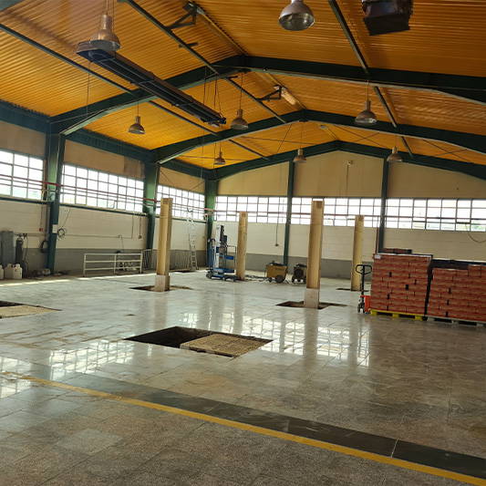 در طرح توسعه ساختمان مقرر گردید که در داخل سوله موجود یک ساختمان یک طبقه احداث گردد که بر اساس طرح مشاور فونداسیون موجود تقویت گردید و ستون فلزی برای احداث نیم طبقه به سازه اضافه گردید.