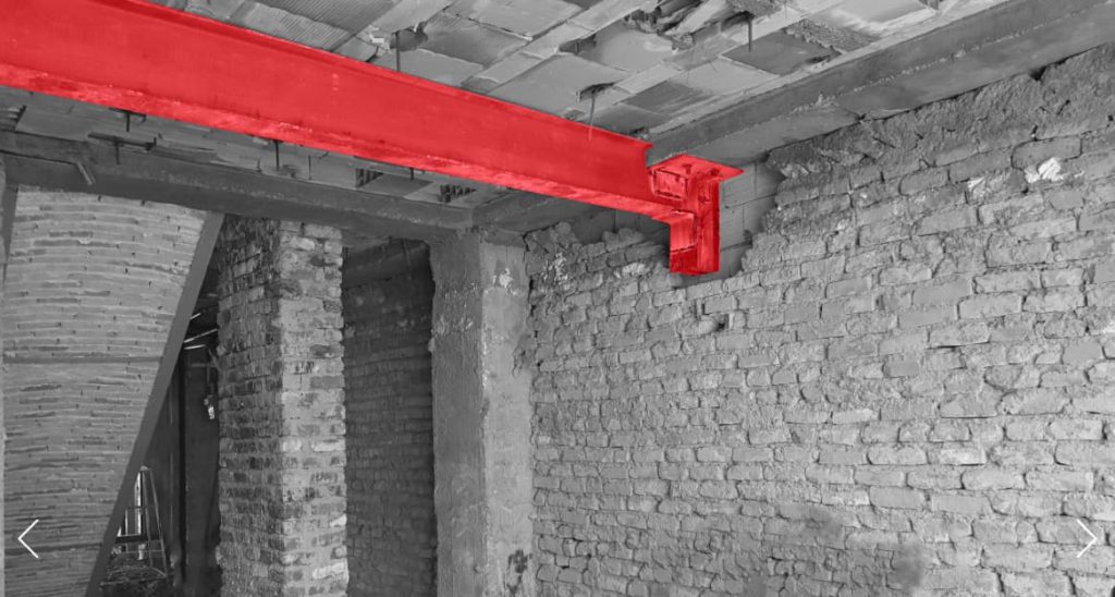 این ساختمان در هفت طبقه شامل زیرزمین، همکف و پنج طبقه مسکونی احداث و به مرحله بهرهبرداری رسیده بود. به علت شکسته شدن لوله آب اصلی خیابان و نشتی آب به زیر ساختمان، ساختمان در کلیه اضلاع دچار نشستهای نامتقارن گردیده بود و به همین دلیل نازککاریهای ساختمان دچار آسیب شدید شده بود. نشست نامتقارن در اضلاع ساختمان (22-12 سانتی متر) وجود داشت. به روش اجرای شمع به ارتفاع متغیر از (5/8-5/6 متر) تحکیم بستر ساختمان انجام شد.