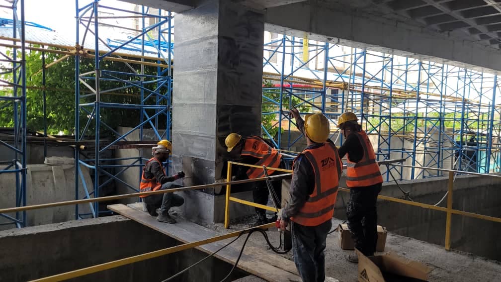 لرزش محسوس بالکنهای اضافه شده موجب شده بود تا مشاور نسبت به ارائه دیتیل جهت کنترل خیز و لرزش بالکنها اقدام نماید. به این منظور در طرح ارائه شده از طرف مشاور در پیشانی پوترهای موجود، کاشت بولت و نصب صفحه انجام شده تا با المانهای فلزی تقویت دال بالکنها و کنترل ارتعاش آن انجام شود.
