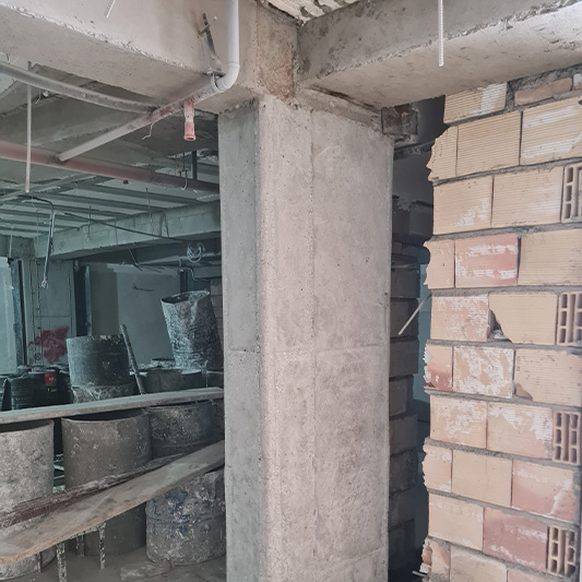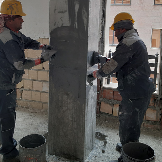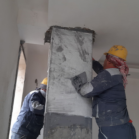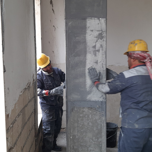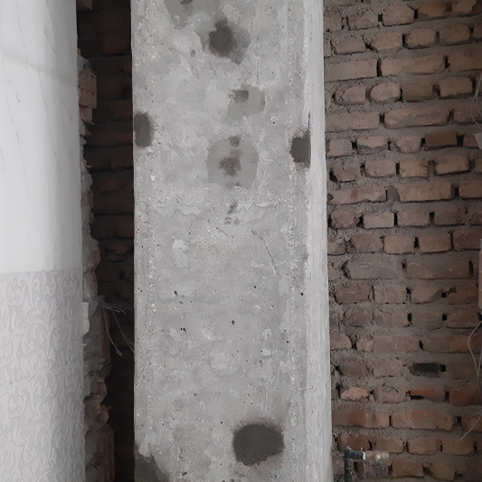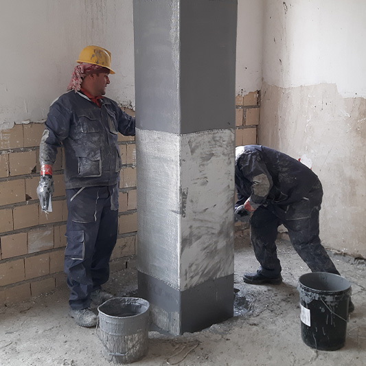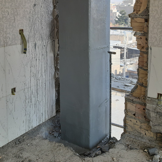 سازه ساختمان در پنج طبقه (همکف و چهار طبقه مسکونی) اجرا گردیده بود که با توجه به تغییر در طرح، یک طبقه به ساختمان اضافه گردید. با توجه به نقشه‌های ارائه شده توسط مشاور مقاوم ساز تعدادی از ستون‌های طبقه همکف اول، دوم، سوم و چهارم توسط الیاف شیشه (GFRP) تقویت گردید.